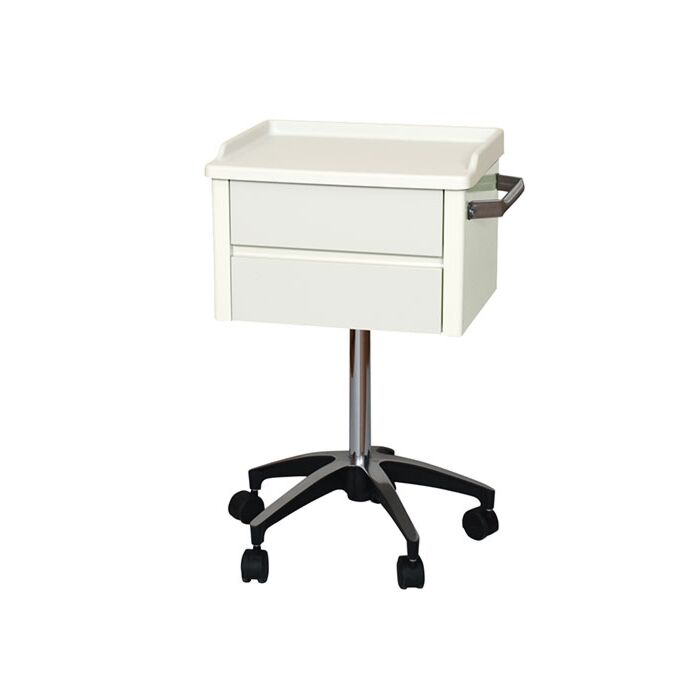 The 6620 special procedures cart has two drawers, a stainless steel push handle, and 5-leg base with twin wheel carpet casters for maximum stability. It comes equipped with a Kydex work surface and is the perfect complement to any exam room or treatment area. 3 year limited warranty