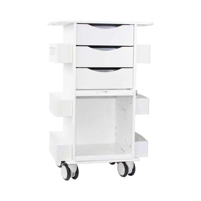 - 2 Locking & 2 Swivel 4in Twin Wheel Casters, 3 Total Locking Drawers, 6 Side Shelves, Locking Bulk Storage with Sliding Drawer
