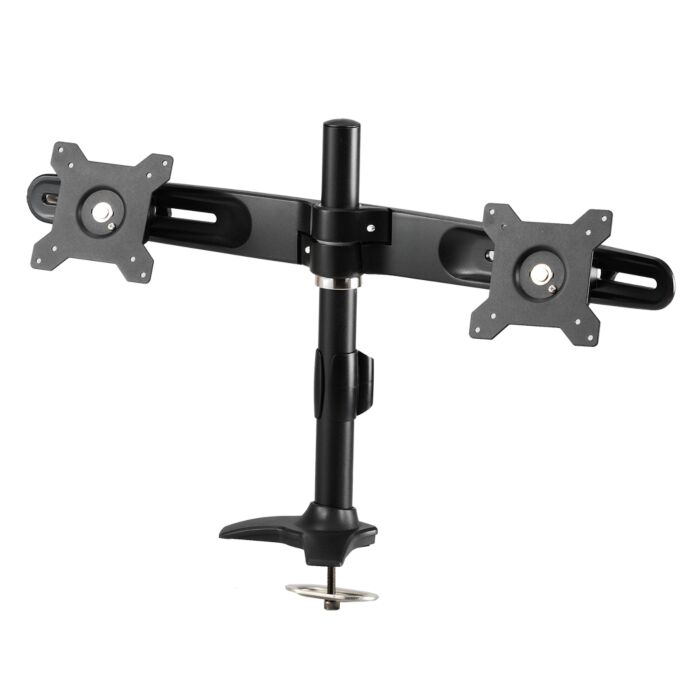 The AMR2P is a dual LCD, pole-style monitor stand with hinge modules. These hinge modules include defined rotation, swivel and tilt functions allowing for maximum comfort as well as functionality. The AMR2P also has an easy cable management cover and column in order to keep you cables tidy and well arranged. In addition to these features, the device is also compatible with VESA 100x100/75X75 and suitable for monitor sizes 15” to 24”.