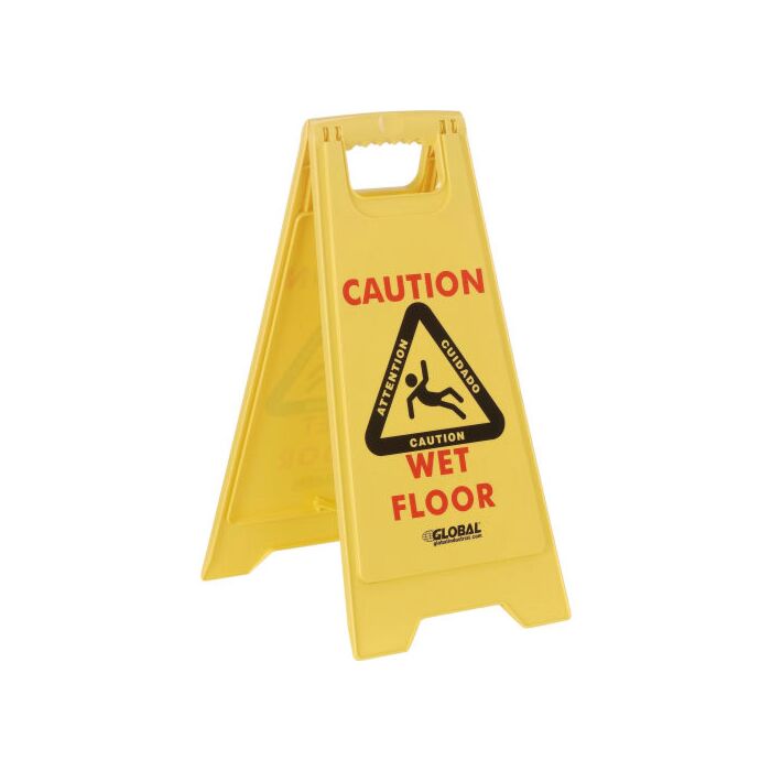 This safety sign helps prevent employees from injuries on dangerous slippery surfaces with clear multi-lingual identification, (English, French and Spanish). Wet floor safety sign is constructed of a durable polypropylene and feature yellow background color with black letters and ANSI compliant graphics. Easily folds to 1" thick for convenient storage or transport on janitor carts. 25”Tall x 12” wide.