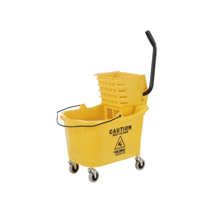Easily clean around hard floor surfaces that require frequent mopping with the Global Industrial™ Mop Bucket and Wringer Combo. This single mop bucket with wringer is made using corrosion-resistant yellow polypropylene with electroplating material for a highly-visible and sleek finish. The wringer features a comfort grip handle for easy, efficient mop squeezing, while the sediment screens trap dirty residue to keep the mop and water cleaner for a longer time period. Ideal for commercial offices, small businesses, and educational facilities. 1-Year Limited Warranty.