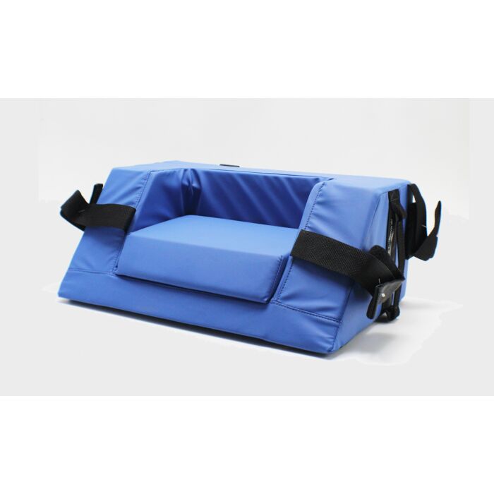 The contoured design supports natural shoulder alignment while integrated Velcro hand straps help maintain arm position without excessive restraint. A removable head cushion provides additional comfort and flexibility for varying patient anatomies and imaging protocols. Constructed with a flat base for stable table placement