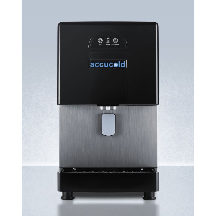Experience the ultimate in convenience with the commercially approved Accucold Medical Countertop Water and Ice dispenser. The AIWD160 fits perfectly on standard counters, with a slim width under 14 inches. This unit can produce up to 160 pounds of ice per day for any medical office, clinic or radiology department. Three dispenser functions - ice, water, or ice+water. The removable tray and sealed back make for easy cleaning. This unit comes equipped with UV lighting in the dispenser.