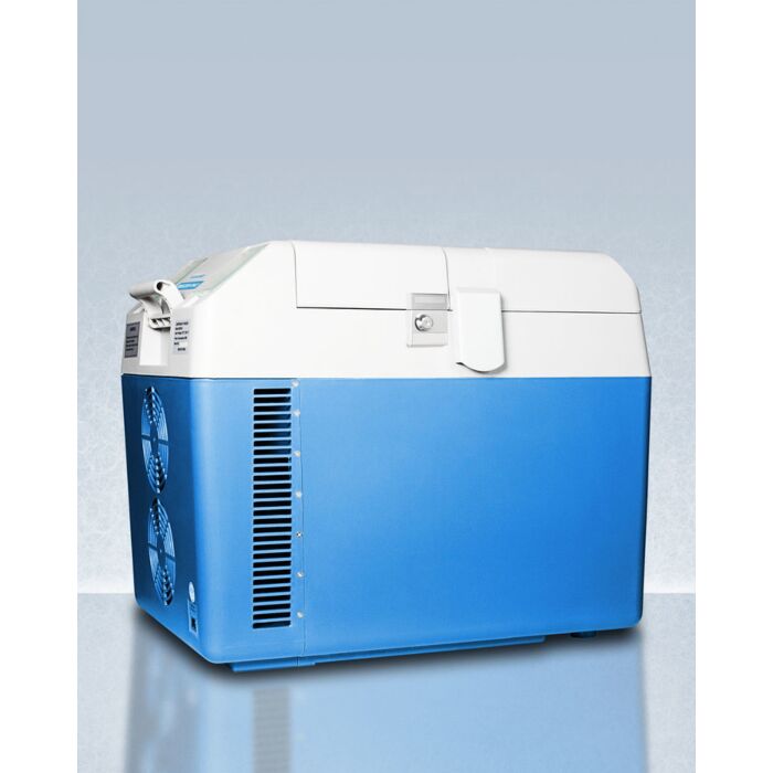 This lightweight compressor-operated unit can be plugged into the 12V DC auxiliary power outlet/lighter socket inside any vehicle, as well as 24V sources. We also provide an AC adapter to allow the SPFZ25M to be plugged into a 110V electrical wall outlet. Sturdy side handles allow easy lifting and a factory-installed lock ensures you can secure the interior as needed. We include a collapsible trolley for easy mobility from vehicle to facility.