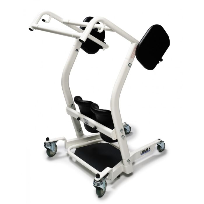 The Lumex® Stand Assist is a transport assistance unit that keeps the resident actively engaged in the transport process. Transport functions of all kinds are quick, convenient, and require minimal caregiver assistance. Users grasp the middle bar and use their own strength to pull themselves up into position. A padded split seat swings out to allow loading or unloading, then swings back to form a comfortable and stable transport seat. The Stand Assist is a convenient toileting alternative to a wheelchair.• 400 lb safe working load• Padded dual knee pads and seat pads for comfortable transport• Stable base with locking rear casters• Fits easily through narrow doorways• Affordable alternative to electric sit-to-stand liftsNote: The Lumex® Stand Assist is designed for patients and residents who have the strength and stability to lift and support themselves. We recommend the #LF2020 electric sit-to-stand lift for patients and residents with limited strength and stability.Specifications