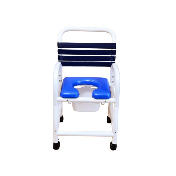 Experience enhanced comfort and safety with the Deluxe New Era Infection Control Patented Shower Chair, designed for superior hygiene and ease of use. This innovative shower chair is engineered with an 18" internal width and features an open front removable soft seat for improved accessibility. The included commode pail adds versatility, while the 3" twin all-locking casters ensure stability and mobility. With a robust weight capacity of 310 lbs, this chair is ideal for a variety of users. This chair is perfect for infection control environments, combining safety, convenience, and durability in one versatile design.