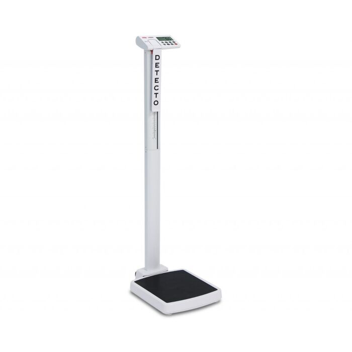 DETECTO’s new solo eye-level clinical scale is the most economical, high-quality digital physician scale with height rod available. The solo® scale features 550 lb x 0.2 lb / 250 kg x 0.1 kg capacity, 14 in W x 15 in D x 2.4 in H low-profile platform, inline mechanical height rod, eye-level weight display and column, one-inch-high LCD readouts, Body Mass Index calculation, integral wheels for mobility, one RS232 serial port, and convenient audible beep confirmation. The solo® is powered by 6 AA batteries, which are included, or an optional AC adapter.