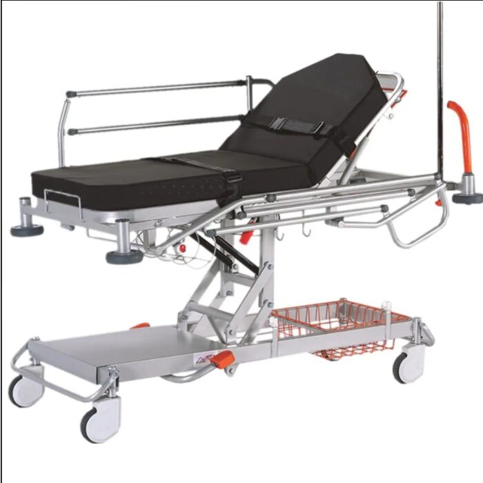 The Transport Stretcher is a durable stretcher with a lockable side rail that can be folded and is easy to use. It's perfect for both hospitals and ambulance services. Raise the bed, backrest, and headrest in seconds with hydraulic control. Transport anyone safely & comfortably with this Transport Stretcher. Just push, pull, or slide your stretcher with ease thanks to our gas springs. It's easy to adjust the height of the stretcher at any time, too. Your patients will be comfortable with a clean and hygienic surface that is easy to maintain, as well!