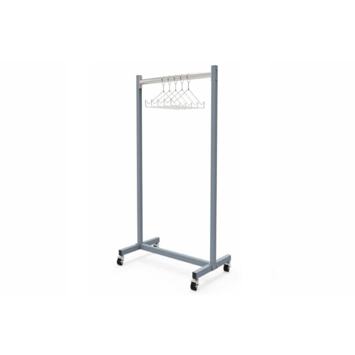 The Mobile Rack comes equipped with five closed hangers and holds up to 300 lbs. It is sturdy yet easily transported between work spaces.