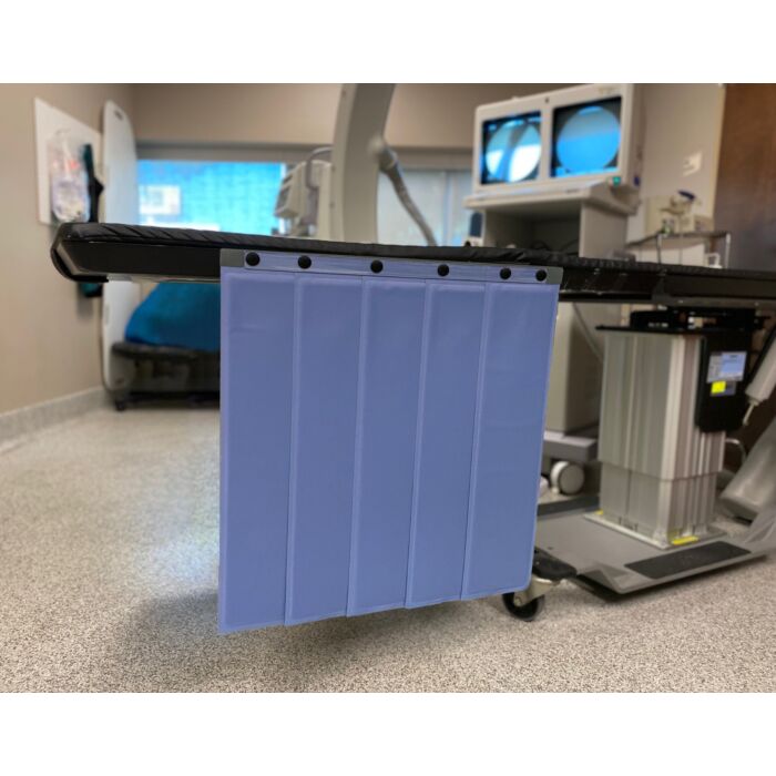 The Radiation Shielding Pleated Table Shield is a radiation table shield that complies with CDC Efficacy guidelines for Category IB disinfection protocol for noncritical medical devices. With overall dimensions of 21.5″ W x 24″ L, this Radgenic shield adds an extra layer of protection with a lead core of 0.5mm Pb Eq. Plus, it is made from a polyurethane coated fabric which can be easily cleaned and disinfected with Quaternary or Isopropyl disinfectant wipes. The Radiation Shielding Pleated Table Shield is non-porous, with a smooth surface, and fully sealed seams. It is also latex free, has no Velcro, and is soil and stain resistant. This Radgenic radiation table shield is available in four different colors: white, gray, blue, and green.