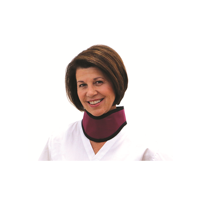 New Style Thyroid Collar offers a trim yet shielded and comfortable design. Includes binding and rear hook & loop closure.