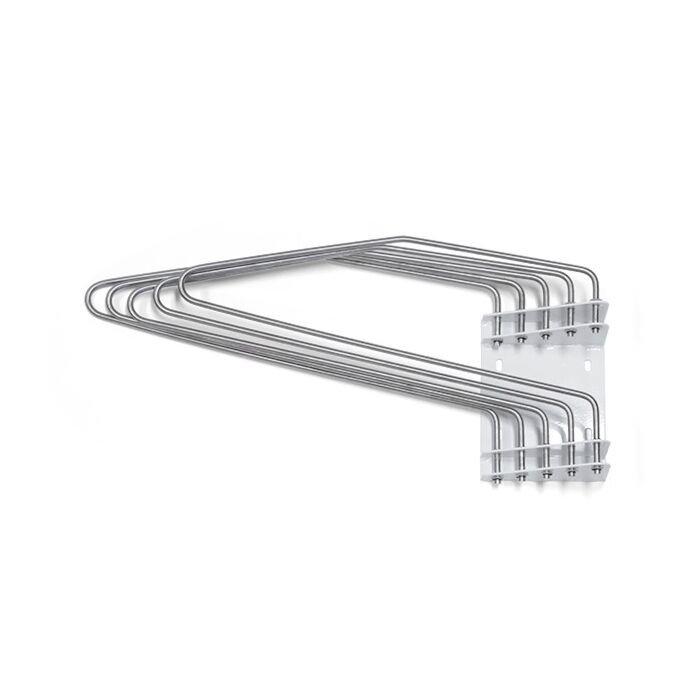 The Wall Rack offers great storage capacity. The heavy duty metal rack holds up to 5 aprons on 5 arms to a maximum suggested weight of 110 lbs. It features five chromium plated pivoting hangers which can flatten out nearly 180 degrees. It’s great for storage behind doors, equipment, etc…