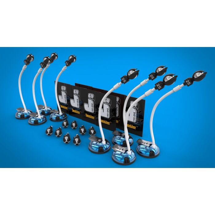 The fatPAK™ is a starter package for up to eight rooms. Eight (8) Akucal EVO suction stands, eight extra Rollr markers (16 in all), 8 extra Ballclaws (16 in all), and eight (8) Smoothee™ strips.