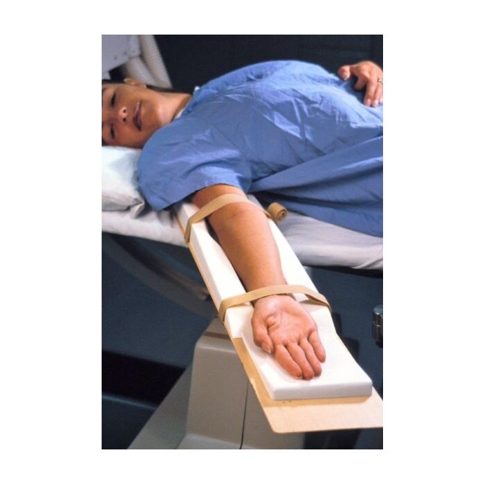 The arm lies comfortably on a wood board slipped under the shoulder.
