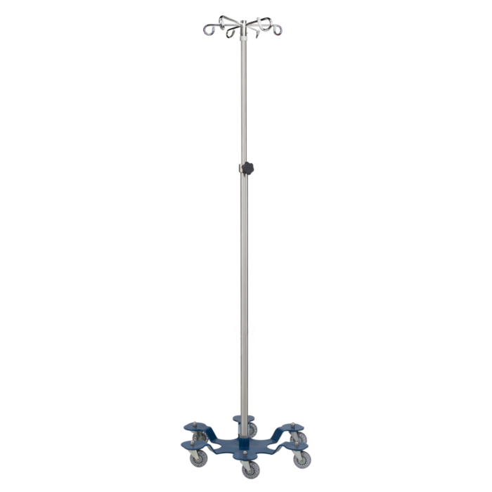 The Blickman 1370-6 (6-leg, 6-hook) IV stands offer a low center of gravity base and are designed for hospital applications requiring multiple pumps or whenever a heavier base is required. The Tru-LocTM friction knob secures height position.
