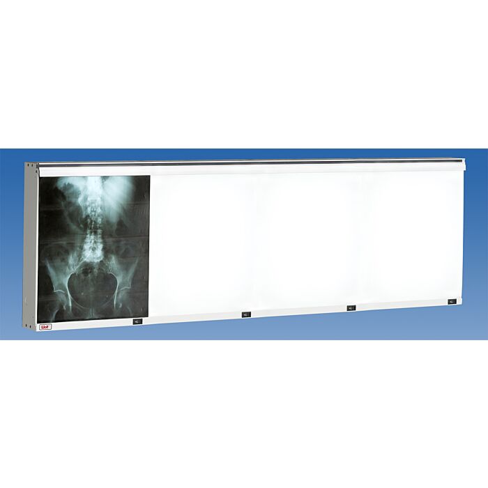 The Econoline features two bulb illuminators (15 watts each -2200 Candela per square meter) a 3 ½" deep aluminum cabinet with a baked-on white finish, a magic grip film retainer and a 6' line cord with 3 prong plug.