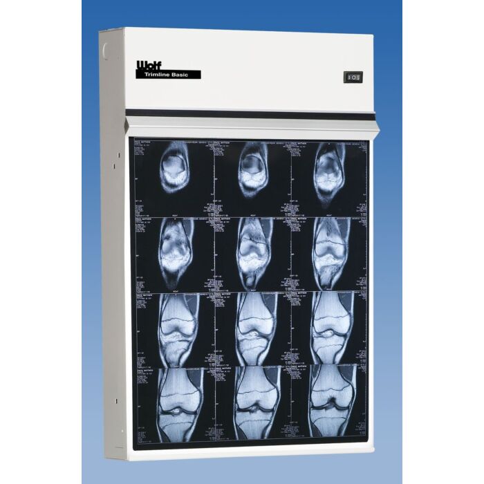 - The Trimline Plus offers four lamps per each 14" x 17" viewing area providing 5,150 Candela per square meter. The Trimline Plus is available in 12 sizes, and Wolf can even specially design a multi-tier unit to fit your specifications. The Trimline Plus comes standard with a baked-on white polyester powder finish, film activated auto switches, a roller grip film retainer, cluster switches on 2-Over-2 units and up. An 8' power cord with hospital grade plug is standard.