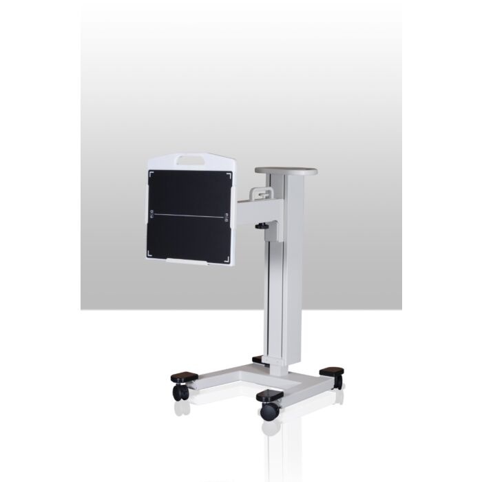 The Mobile DR Panel Positioning Partner provides stability, versatility and reliability when positioning DR panels for portable radiography. Perpendicularity is crucial during cross-table exams and expensive panels are heavier than their imaging receptor predecessors - the Positioning Partner allows the tech to positioning effectively while achieving optimal images for a variety of radiographs. With its small footprint and counterbalanced base, the mobile DR panel holder is easy to drape for surgery and will not tip. It can be used in surgery, imaging centers, clinics and exam rooms.