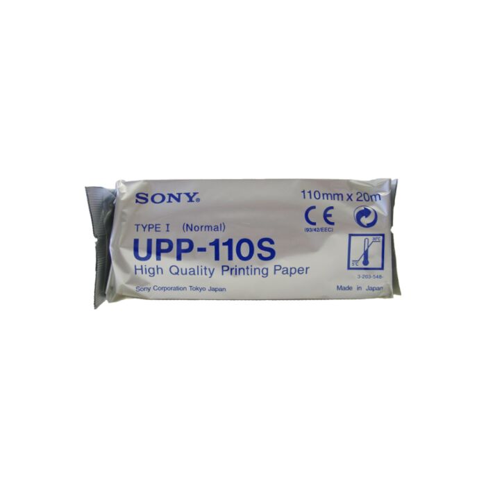The Sony UPP-110S (Type I) print media is a standard density thermal paper roll designed for Sony A6 black and white thermal printers. This high-quality media is a direct replacement for the UPP-110S/4, ensuring consistent performance and compatibility with models such as the UP-880, UP-890MD, UP-D890, UP-895MD, UP-897MD, and UP-D897 series printers. Each box contains 10 rolls, with each roll measuring 110mm in width and 20m in length, capable of producing approximately 270 prints. Primarily used in ultrasound, dental, and microscopy applications, this thermal printing paper is specifically crafted for medical recording equipment and ultrasound systems, delivering reliable and precise results.