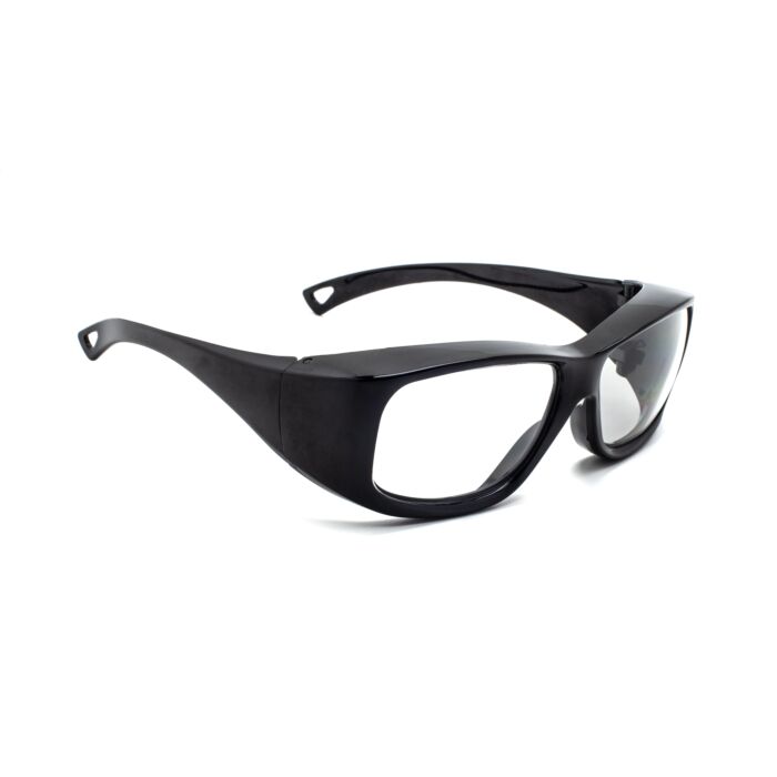 The model 39 is a wraparound frame constructed of plastic and utilizes a classic safety style that is solid, sturdy, and comfortable.This product offers our standard high quality, distortion-free SF-6 Schott Glass Radiation-reducing lenses with .75mm lead equivalency. The model RG-39-BK fits best for Large style heads.
