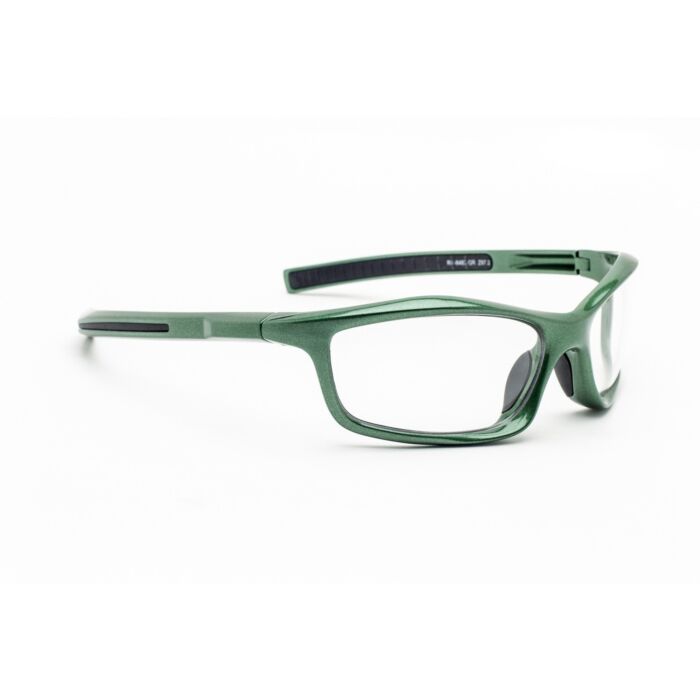 Phillips Model RG-8483 radiation protective glasses offer a stylish wrap-around frame style for Women. The frame is constructed of high impact TR-90 nylon and features rubberized soft grip nose pads. This product offers our standard high quality, distortion-free SF-6 Schott glass, radiation-reducing lenses with .75mm lead equivalency. Model 8483 fits best for Medium style heads.