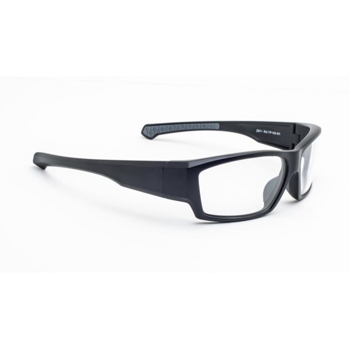 TP198 is a plastic wraparound frame made out of TR-90 Nylon offered in a sleek black color. The non slip grip on the arm of the frame offers added comfort and protection to allow them to stay securely on your face. The rubber nose piece allows for a lightweight feel and added grip to ensure that they sit comfortably on your nose. This frame is great for riding a motorcycle and working in a machine shop because of the dual function and style of the frame. ANSI Z87 Safety Approved.This product offers our standard high quality, distortion-free SF-6 Schott glass, radiation-reducing lenses with .75mm lead equivalency. Model TP198 fits best for Large style heads.