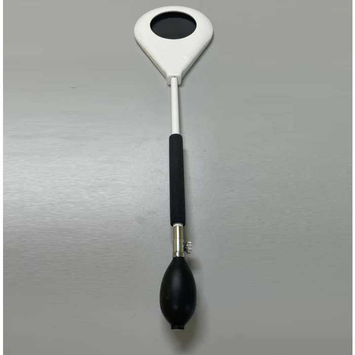 The Paddle features a rubber compression bladder, easily inflated by means of a built-in Baumanometer bulb. A metal circle in the bladder ring fluoroscopically indicates the area under compression.