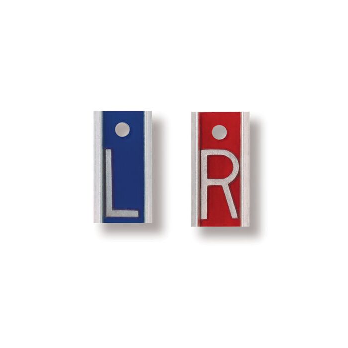 Durable Aluminum X-Ray Lead Markers adds density and improves the overall image. Featuring 1" high-density lead R & L letters encased in crystal-clear epoxy and a tough aluminum casing, these customizable markers ensure permanent radiographic identification. Standard red and blue colors are shown but other colors and patterns are available. Letters are embedded in a crystal-clear epoxy. Initials or numbers are optional. Purchase just right or left replacement markers or purchase by the set. All markers are made to order, ensuring quality and precision.