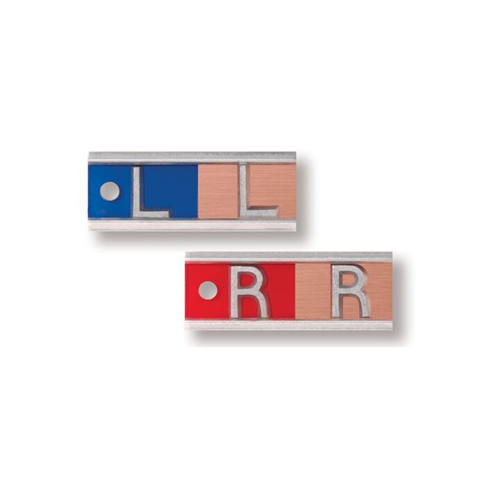 These markers contain a copper filter in one half of a double marker set. This allows the technician to mark the films at varying x-ray exposures or subject densities without changing the markers.