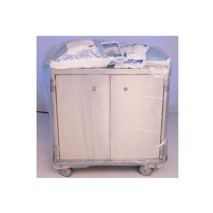 Non sterile, Gusseted Case Cart Covers are available in two popular sizes to fit most carts. 72" x 48" and a larger size 45" x 33" x 60". 2mil cover for critical items on case carts, to protect cars from unwanted reach, or for protecting from visibility. These Clear poly perforated bag fits to size to keep items in place and can be used to cover surgical cases, exchange carts, and others.