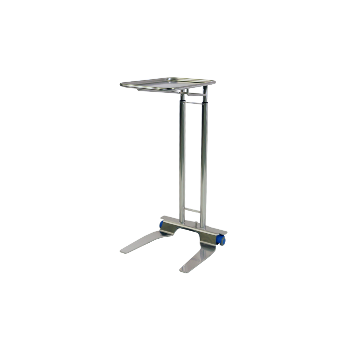 This small, foot-operated mayo stand is built with a fully welded design, ensuring it’s ready for use straight out of the box. Featuring co-reTM and durable stainless-steel construction, this compact instrument stand provides excellent rust resistance and is easy to clean. The stable base design allows the mayo stand to move smoothly under low-clearance equipment, making it ideal for tight spaces in medical settings.