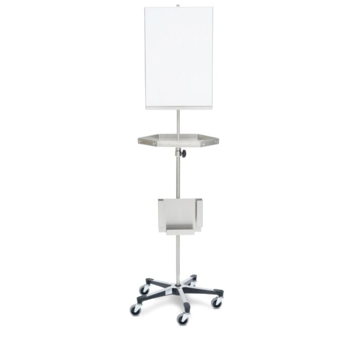 The dry erase board improves patient-centered communication by displaying critical information, such as RSIs checklists. Circulator Station consists of Base, S/S Pole, and Circulator Station Components