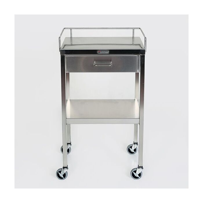 Looking for a Utility Table with 3-sided guardrail and lower drawers. Standard size is 16″W x 20″L and 34″H. 2 locking caster on front to secure unit in place. Locking top drawer available. Fully welded construction and manufactured to our medical specifications suitable for use in the OR.