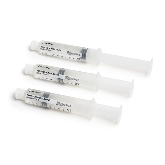 HALYARD* Prefilled Saline Syringes provide clinicians with a high quality, terminally sterile, ready-to-use solution to enhance patient care. All units contain sterile 0.9% Sodium Chloride USP and have been terminally sterilized and individually packaged with a two-year shelf life.