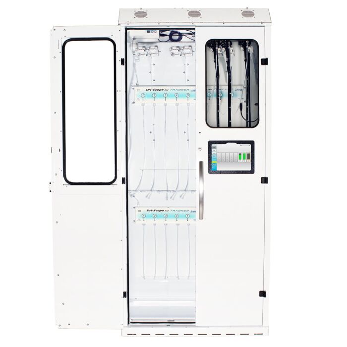 The addition of Dri-Scope Aid®, the industry leading internal lumen drying system, provides constant delivery of HEPA filtered air through all internal endoscope channels using simple to attach individual disposable scope connectors. The next generation “Tracker” unit is a flexible endoscope tracking system that monitors scope status, check-ins and check-outs made by your staff, scope hang times and provides customizable drying options with unique settings for each scope.