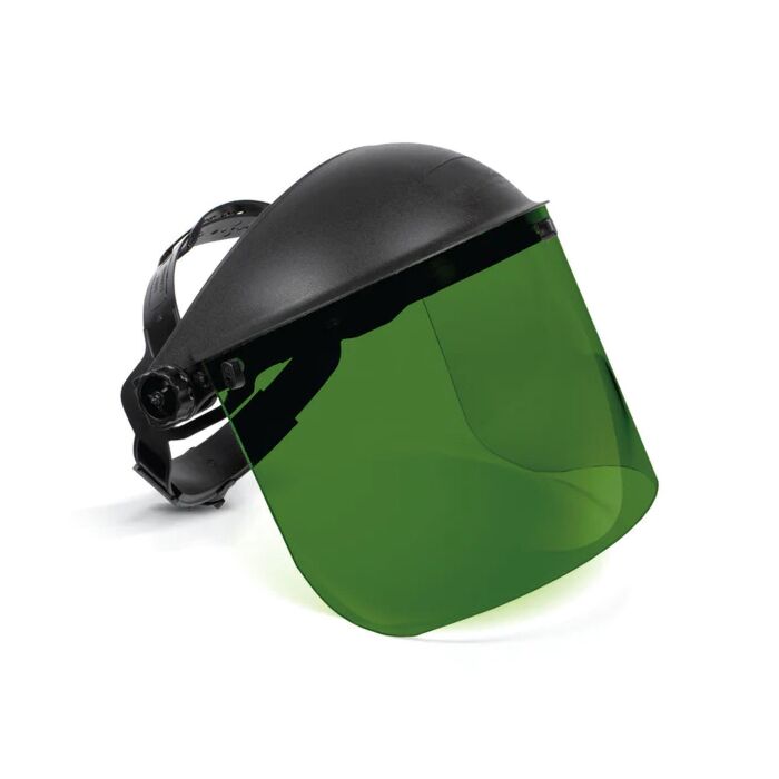 The Laser Welding Face Shield Shade 3 provides protection for the face and eyes. With its adjustable head strap and ratcheting nape strap, this shield offers a personalized fit for optimal comfort and safety. Its pivot action design allows for easy lifting while in use. Crafted with an acrylic lens, this Phillips Safety face shield offers superior optical quality and remarkable durability, delivering true HD optics, exceptional clarity, and optimal protection. Additionally, it is available with an Athermal® Green filter shade 3. Compliant with ANSI Z136.1 safety standards.