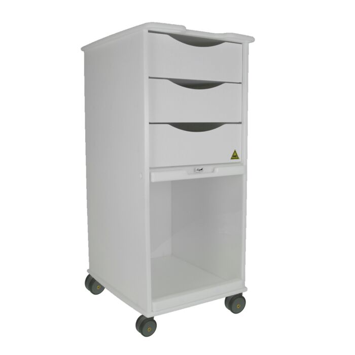This Core SP Supply and Procedure Cart comes with White Drawers is perfect for Ultrasound, X-Ray Imaging, and is compatible for use within the sensitive magnetic imaging environment, keeping supplies mobile and organized. The cutaway ergonomic grab handles in the top make the Core SP easy to maneuver. Constructed from non-ferrous durable high density polyethylene and ABS and non-ferrous casters and screws. Ships fully Assembled.