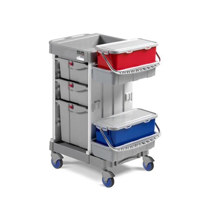 - Two lockable drawers for secure storage of cleaning supplies or tools