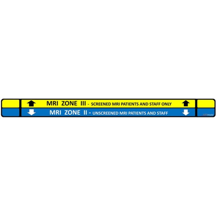 The MRI Floor Sticker Zone 2 to 3 Doorway (44"wide x 4"tall). is designed to clearly mark the transition between MRI zones, providing a visible and reliable guide for staff and patients. Strategically placed at doorways, it ensures smooth, safe movement through your MRI facility while maintaining compliance with safety protocols.