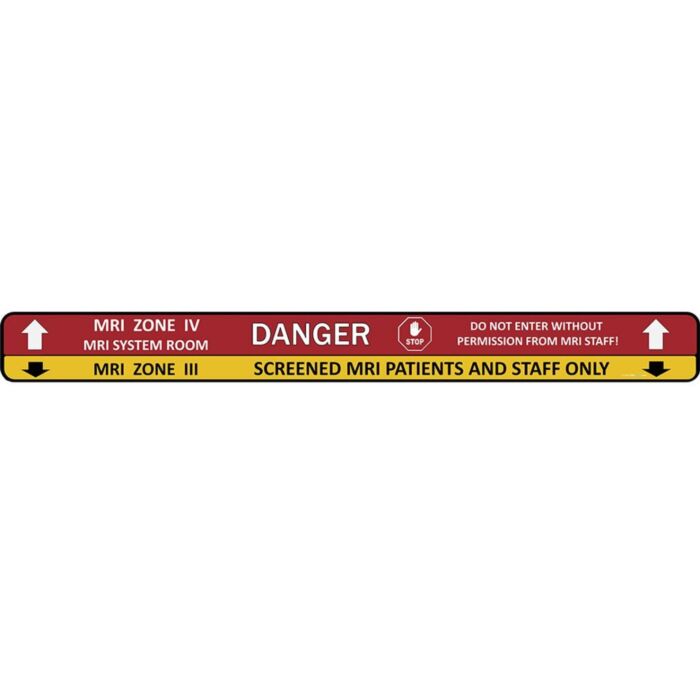 The MRI Floor Sticker Zone 3 to 4 Hallway (69"wide x 4"tall). provides a clear visual guide for staff and patients as they move through critical MRI zones. Designed for hallway placement, it indicates the transition from Zone 3 to Zone 4, helping your team maintain safety protocols and patient compliance effortlessly.