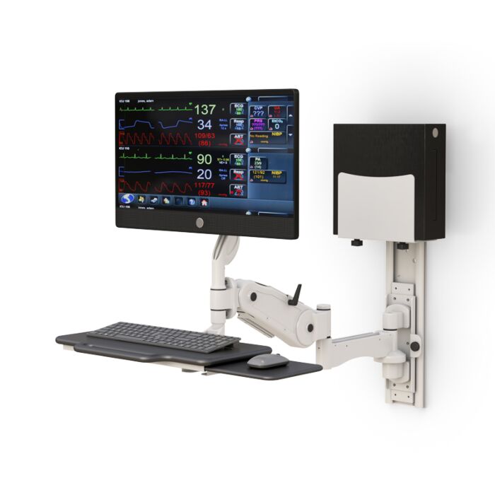 This versatile wall-mounted medical computer workstation is engineered for modern healthcare environments that demand both functionality and infection control. Designed for ergonomic efficiency, it allows providers to seamlessly shift from sit-to-stand positions while maintaining optimal comfort and posture throughout long shifts.