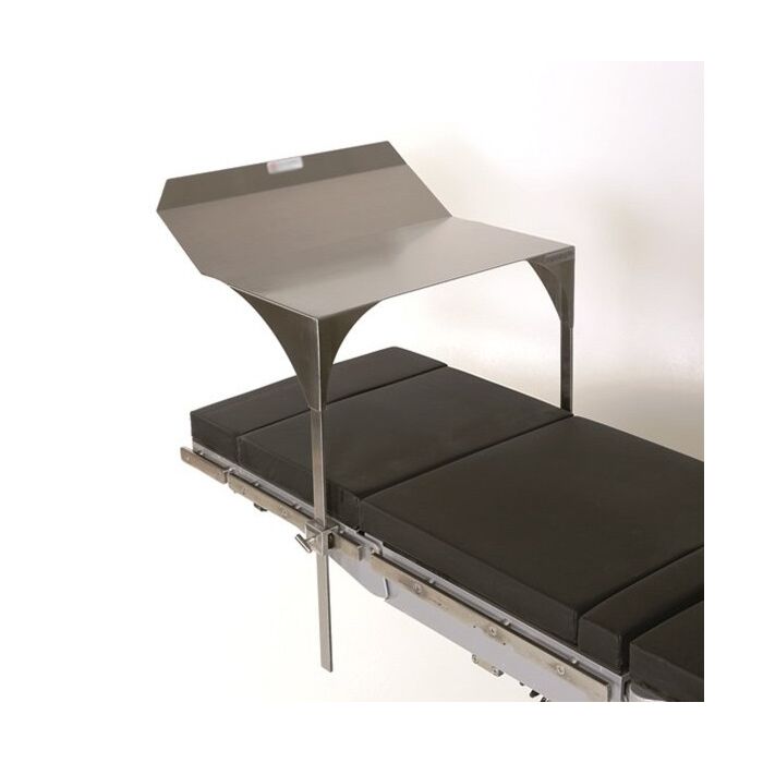 The Anesthesia Protection Shield is designed to protect the patient’s face during surgery and also provides a frame to the anesthesia drape. Features flat tray to rest instruments on. Constructed of durable stainless steel, it attaches to the OR table rail with two side rail sockets that are included. Top surface measures 18 1/4″ a 22 1/4″ and the side supports are 24″L to adjust to the desired height. Blade Style Rail Clamp with New Comfort Grip Knob accepts 1” x 3/8” blade. Clamp dimensions are 3”W x 1.75”H x 1 3/8”D. Low profile design. Side supports measure 1/8″ x 1″. Comparable to Head Butler