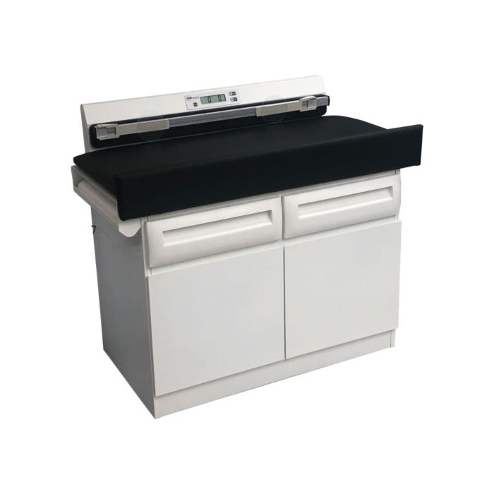 Safety and comfort are at the forefront, with a stainless-steel measuring rule and paddles for quick and accurate length checks, a padded front bumper to help protect infants during exams, and a premium upholstery finish with Prefixx® Protective Coating for easy cleaning and long-lasting durability.