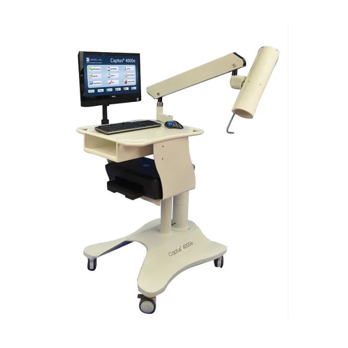 The Captus® 4000e is a comprehensive Nuclear Medicine Measurement System, with specific software modules for thyroid uptake, bioassay, wipe tests, automated quality assurance tests, lab tests, and isotope library. The system includes a fully functional 1024 channel MCA with auto and manual calibration. Timed activity mode features a programmable repetitive timed measurement program. Improved menu driven workflow and large 20 inch color touch screen streamlines user interface. The optional fully integrated DICOM interface communicates directly with hospital information systems, and can transfer patient, wipe test, and QC data. Custom Protocol is included as standard, and Microsoft Office Professional 2010 software is optional. New and improved stand provides ergonomically adjust-able monitor and easy to position articulating collimator arm. Four-sided comfortable handle grips and swivel wheels ensure easy mobility. PC can be attached to either right or left side to optimize workspace.