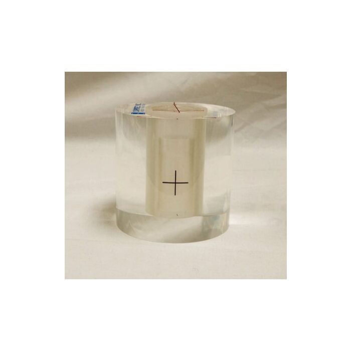 The Captus® neck phantom is made of clear Lucite designed to represent a patient’s neck. The phantom has a two part insert that allows counting in a bottle or vial, as well as capsule counting. The unit is etched to show where the caliper of the thyroid probe should be placed for proper alignment. The phantom allows for placement in a vertical or horizontal position. This phantom meets all suggested requirements for use in counting a thyroid uptake standard source.