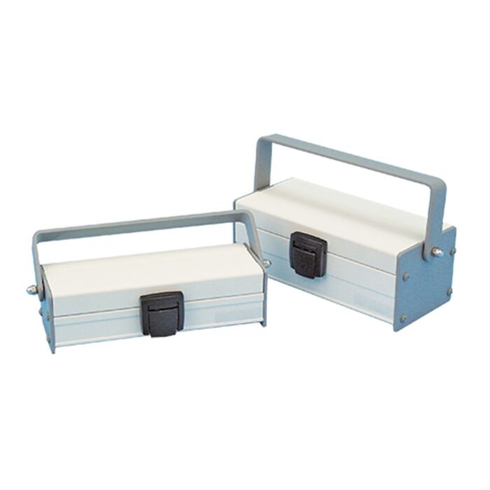 Shielded Syringe Carriers reduce exposure while storing or transporting radioactive material. The overlapping lid design with snap-latch closure prevents streaming. There are two sizes and thicknesses of lead to choose from. The ends of the carriers are double thick to reduce the exposure from the ends of syringes.