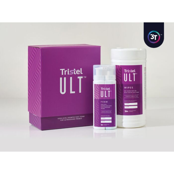 Tristel ULT is a game-changing high-level disinfectant that delivers rapid, reliable disinfection for ultrasound probes without requiring special facilities or equipment. In just two minutes, four pumps of Tristel’s FDA-cleared chlorine dioxide (CIO₂) foam applied to a Tristel ULT dry wipe are all it takes to achieve high-level disinfection at the point of care.