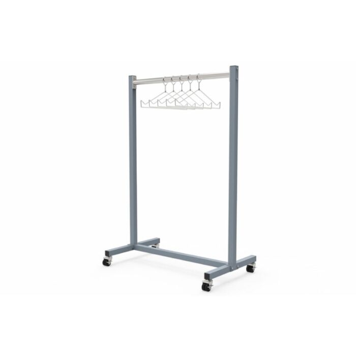 The Mobile Rack comes equipped with five closed hangers and holds up to 300 lbs. It is sturdy yet easily transported between work spaces.